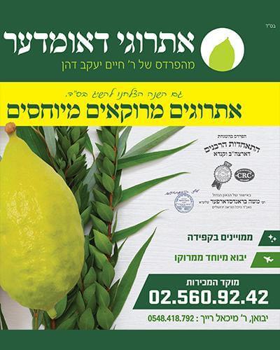 Et comme l'écrit le Rav Efrati – fidèle disciple du Rav Eliachiv – dans son ouvrage Yissa Yossef : «… de ce fait, notre maître accepta d'envoyer une délégation qui attesta que les Étroguim cultivés sur les hauteurs des montagnes de l'Atlas n'ont pas de signe de croisement et aucun défaut ne fut décelé dans le cédrat marocain, en comparaison avec d'autres Étroguim qui ont, semble-t-il, subi des croisements, et il se procurait même ce type d'Étrog à Soucot. » Le Roch Yéchiva, Rav Chemouël Auerbach, utilisa également l'Étrog du Maroc, ainsi que de nombreux autres grands Maîtres en Torah.